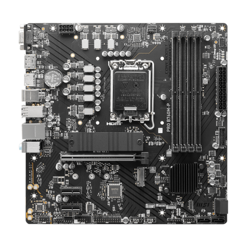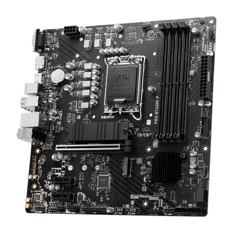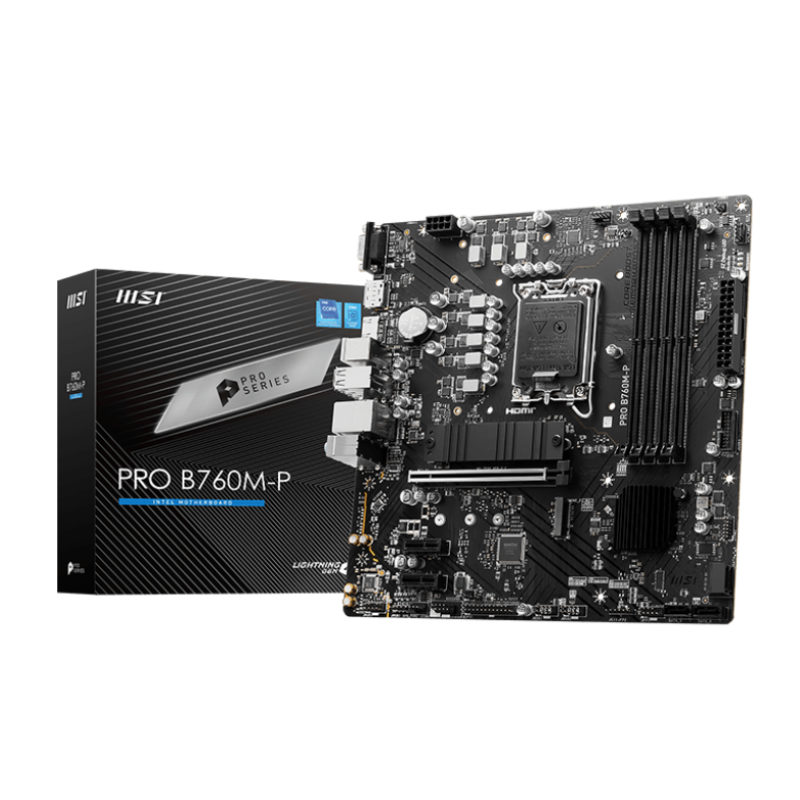 MSI PRO B760M-P Motherboard, Micro-ATX – Supports 12th and 13th Gen Intel Core Processors, LGA 1700 – DDR5 Memory Boost 6800+MHz/OC, PCIe 4.0 x16 Slot, M.2 Gen4 Slots